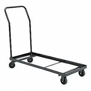 Load chairs evenly and do not exceed the weight capacity. Always move the dolly slowly and keep hands clear of wheels while transporting chairs.