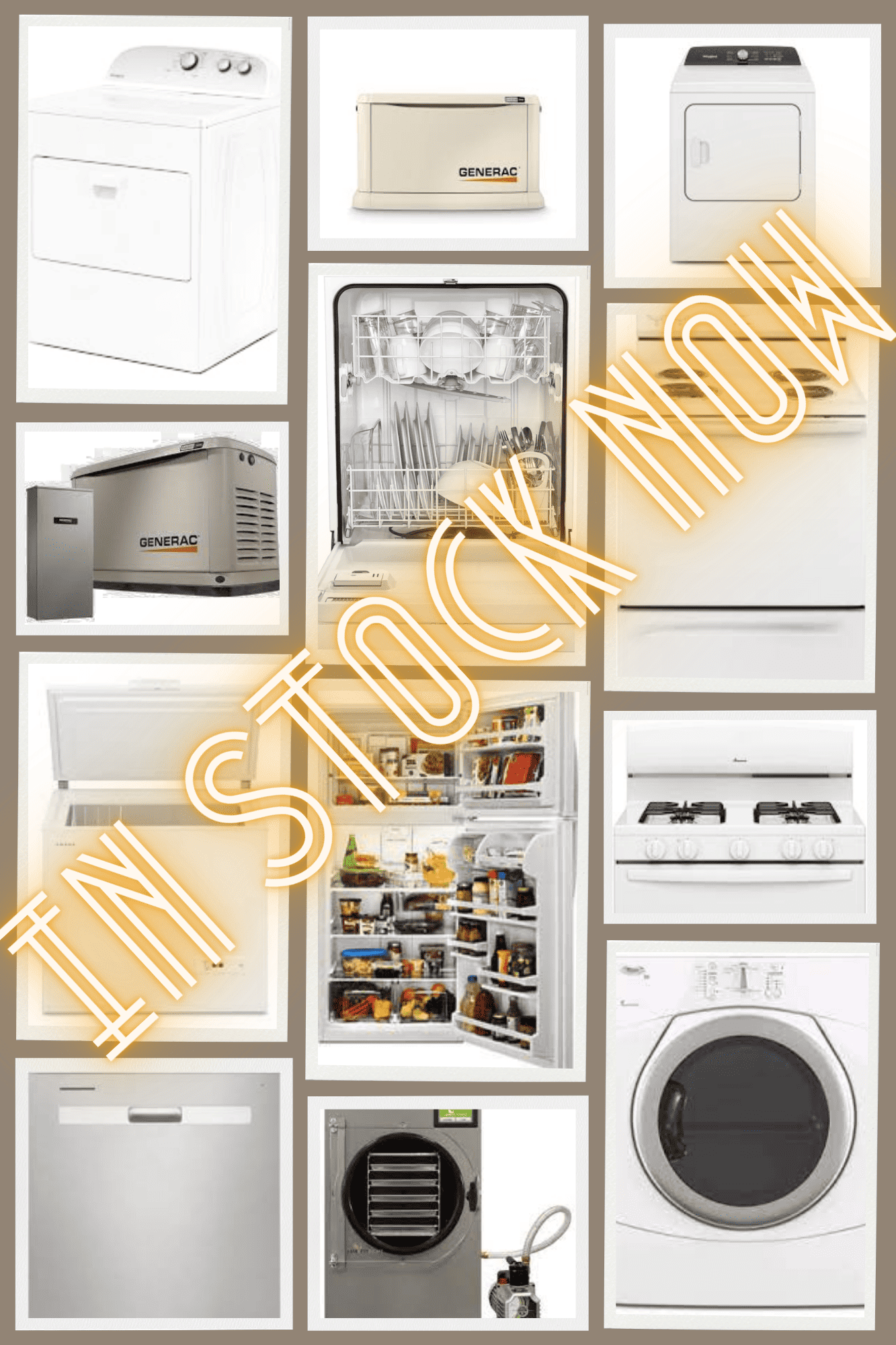 We have in-stock appliances that can be delivered and installed in a matter of hours! We can also order additional styles. From generators, to kitchen appliances, to washers/dryers, we have you covered.